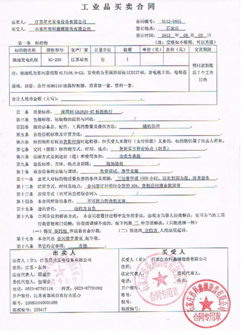 2012年8月5日,石家莊市科鑫螺旋齒有限公司與星光公司簽訂了柴油發電機組買賣合同,合同內容為1臺200KW東風康明斯發電機組。