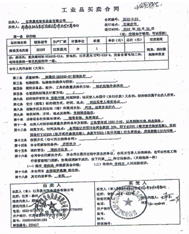 2012年5月21日,邯鄲市孫莊采礦有限公司峰合礦業籌備處成功購買了星光的一臺250KW的重慶康明斯發電機組,對于此次合作雙方都感到十分愉快。