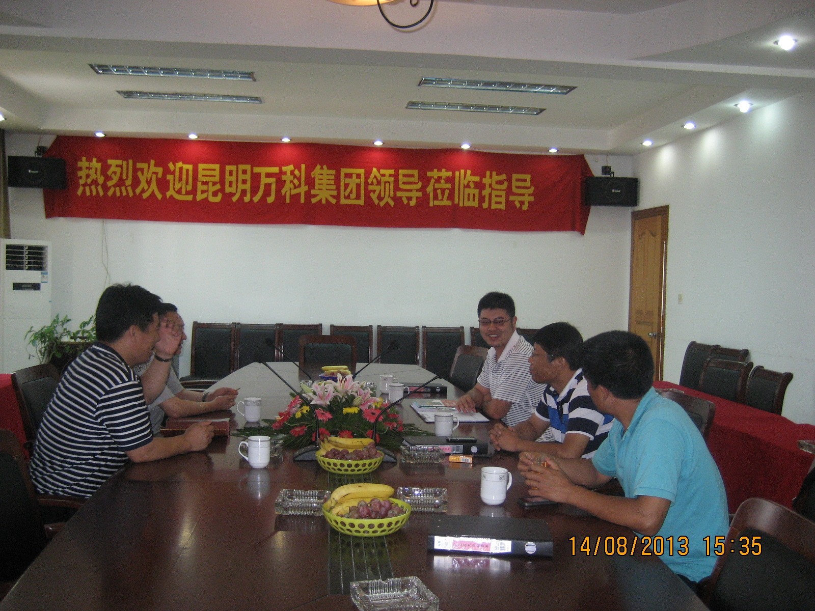 8月14日下午,萬科集團領導不懼炎熱,來我司實地考察,洽談合作事宜。我公司副總顧仁建、曲靖辦事處負責人王國富、技術科主任周小兵、辦公室主任顧寶鼎,熱情接待,并帶客戶參觀車間生產情況。